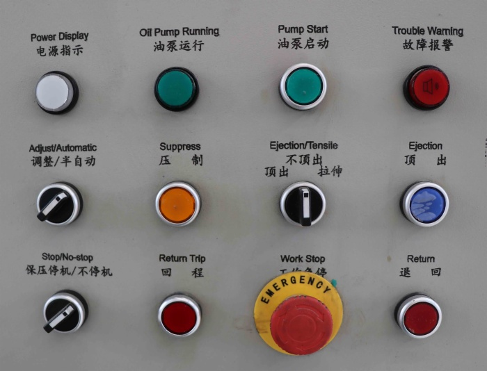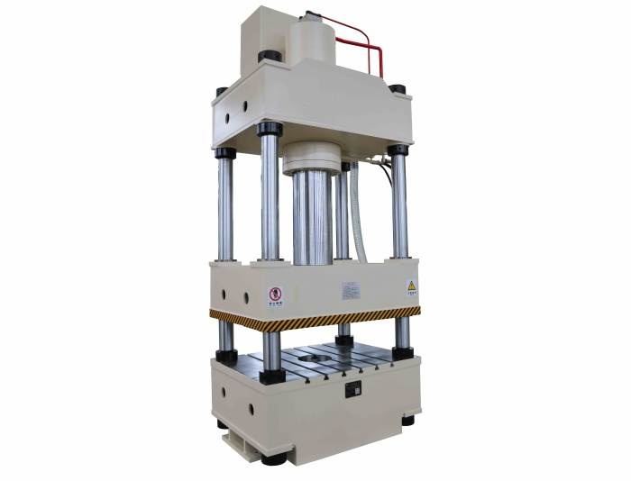 The equipment is composed of two major parts: the main unit and the control mechanism. They are connected through pipelines and electrical devices, forming a cohesive whole. The main unit consists of a three-beam and four-column frame body, a main cylinder, and a limiting device. The control mechanism comprises a hydraulic pump station (power system) and an electrical cabinet.